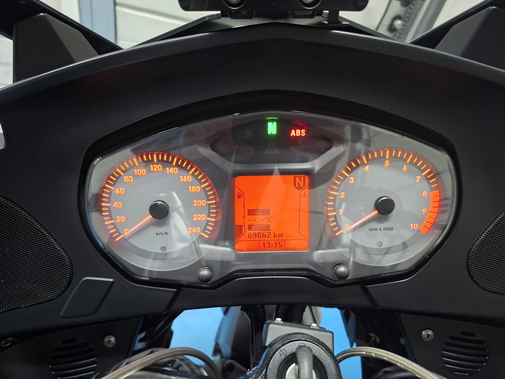 Nette toermotor met cruisecontrole, handvatverwarming, ESA, zijkoffers, binnentassen en tanktas.